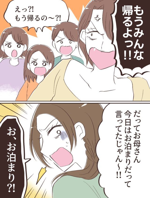 「だってお母さん、今日はお泊まりだって言ってたじゃん~!!」