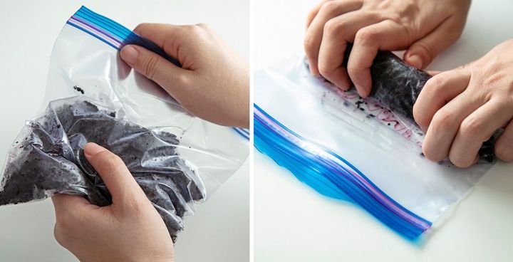 (3)保存袋に(2)、酢を加えてもみ、空気を抜いて冷蔵室で1日以上なじませる。