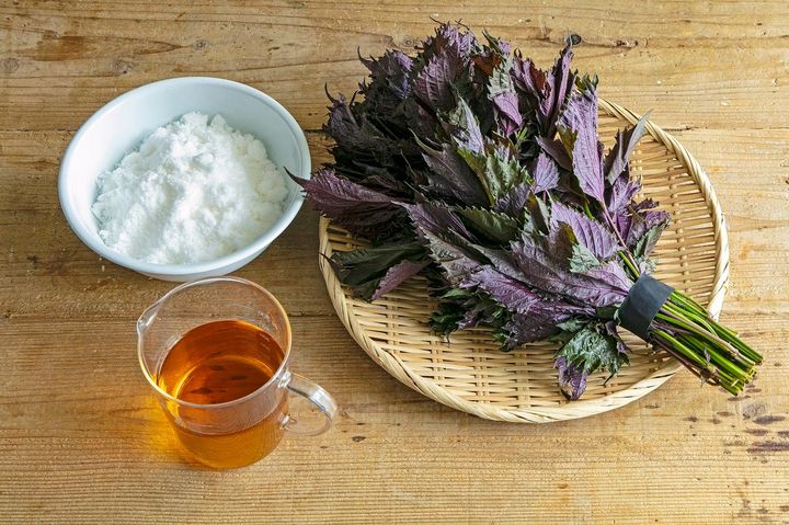赤い理由は、アントシアニンというポリフェノールの1種によるもの。これを利用して梅干しやしば漬けに色漬けします。また、シロップやジュースにすれば、赤い色とさわやかな香りを楽しめます。