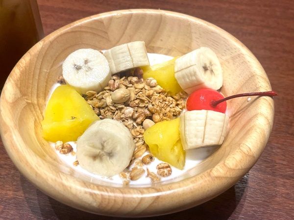フルーツの濃厚な甘さとシリアルの風味は、ほろ苦でコクのあるアイスコーヒーともよく合います。ドリンク付きでこのお値段なので、かなりコスパがいいと感じました。