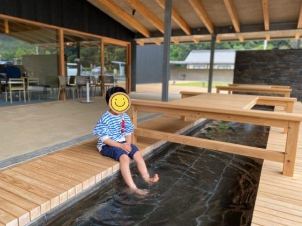 テーブルも設置されてるので、お茶しながら、ゆっくり寛げるテラス席ですね〜♪息子もお風呂の前に、ひとっ足風呂!笑