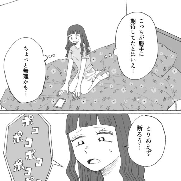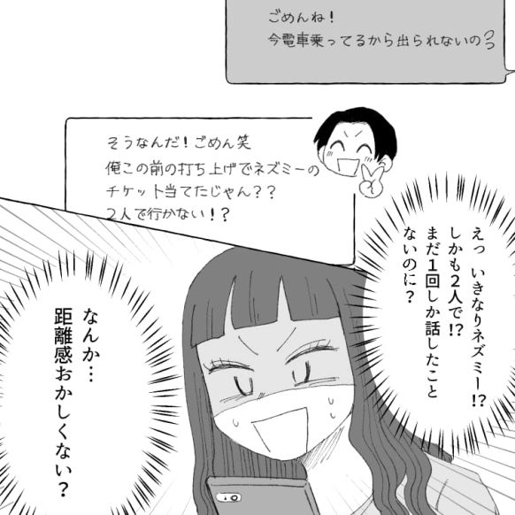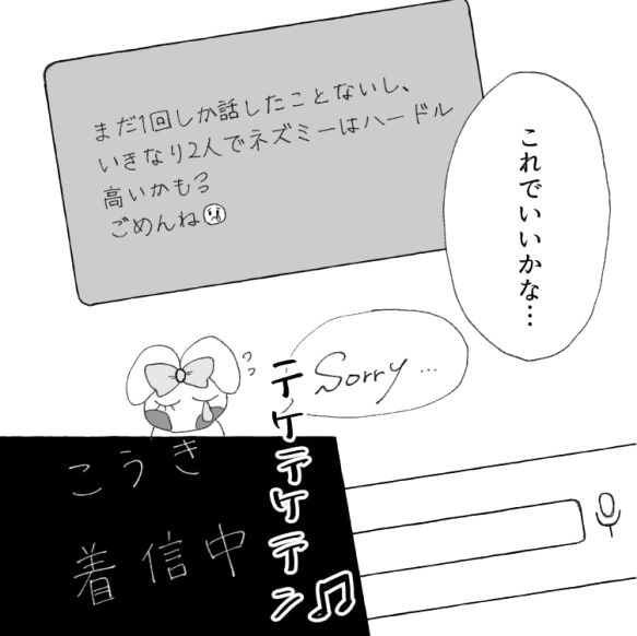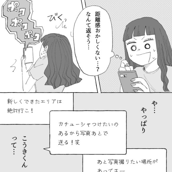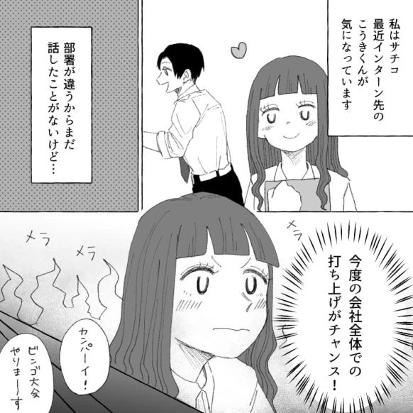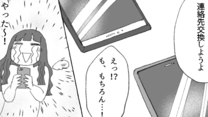 ある日会社全体での打ち上げがあり、こうきくんと連絡先を交換して主人公は舞い上がっていました。