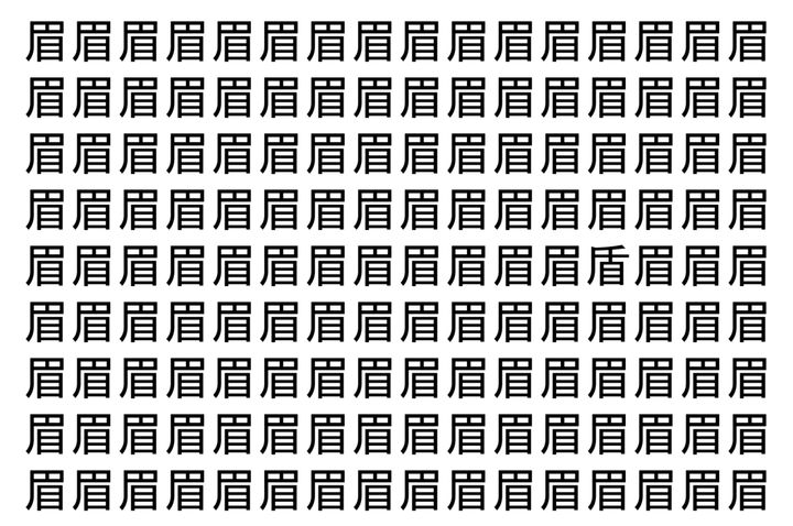 【脳トレ】「眉」の中に紛れて1つ違う文字がある!?あなたは何秒で探し出せるかな??【違う文字を探せ!】