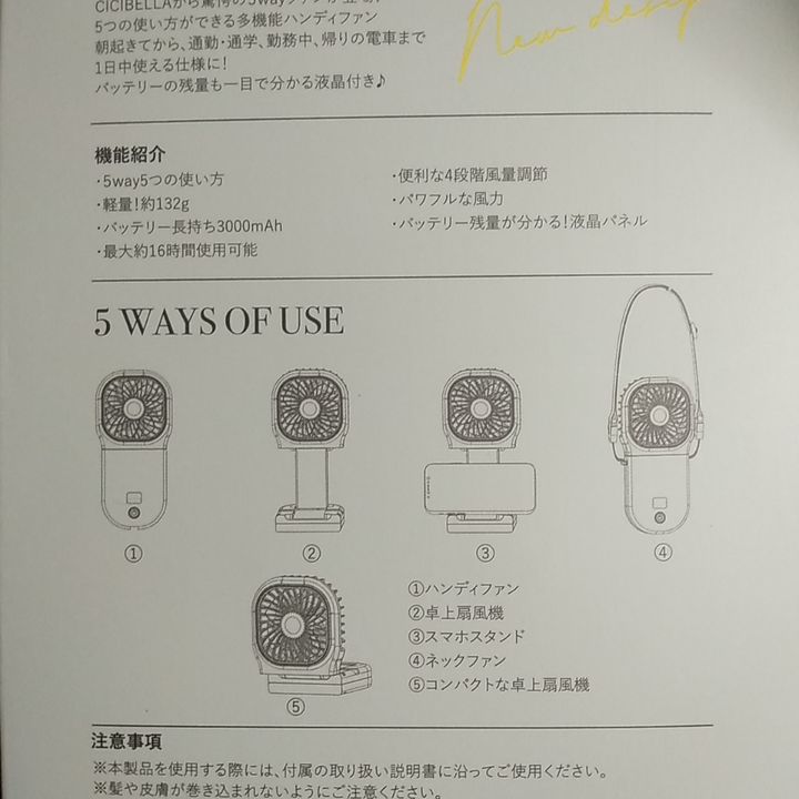 インターネットで購入したCICIBELLAの5wayハンディファンと