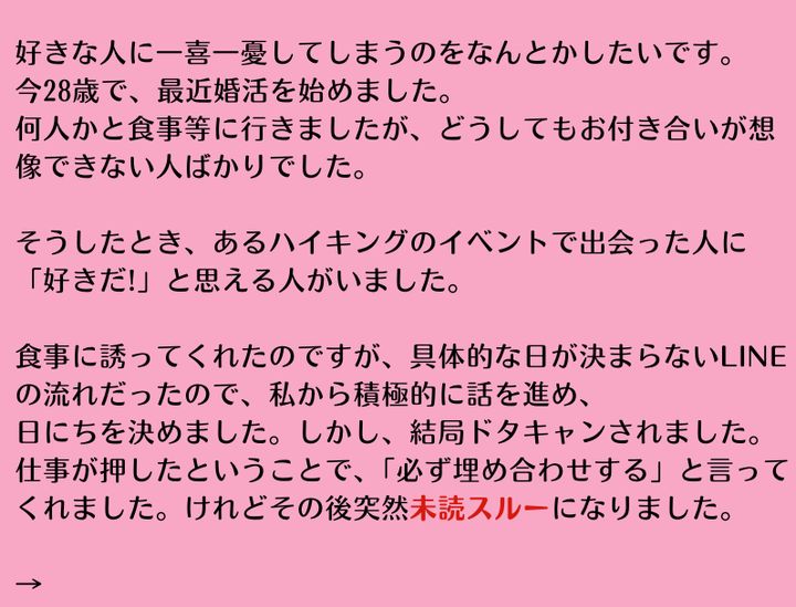 3. 好きな人からの突然の”未読スルー”。気になってしょうがないし、あきらめられない… お悩み#65