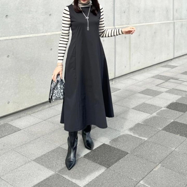 「ウルトラストレッチエアリズムワンピース」は、上半身はほどよくタイトなデザインで引き締めつつ、きれいに広がるフレアデザインで着やせが叶う美シルエットワンピース。ウエストのくびれが高めの位置なので足長効果も抜群。