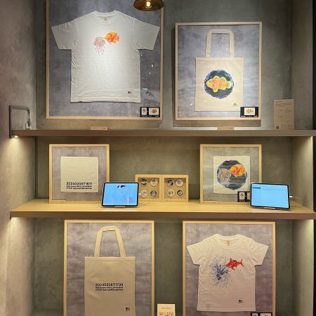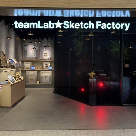ミュージアムの外にあるスケッチファクトリーでは、スケッチオーシャンで描いた絵を、様々なプロダクト(缶バッジ・タオル・Tシャツ・トートバッグ)にして持ち帰ることができます。