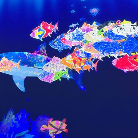 3. 【麻布台ヒルズ】チームラボボーダレスの「スケッチオーシャン」で自分の描いた魚が動きだす!