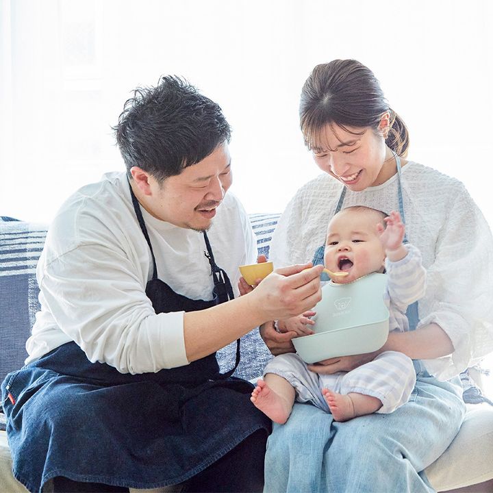 離乳食をはじめて3カ月のぐっち夫婦。「食事はずっと続いていくこと。がんばって完食させることより、食に興味を持ってもらったり、食事の時間が楽しいと思ってもらうことのほうが大切」と言います。いつだって「食」を楽しむふたりらしい離乳食のリアル事情を伺いました。