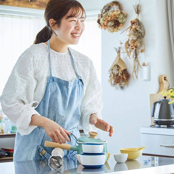 調理はまずは親が楽しく快適にできるよう、気分のアガる鍋や便利なブレンダーに先行投資。ベビーの食べやすさがぐんと上がる「iiwan」のスプーンなど、先輩ママから聞いた便利グッズは積極的に取り入れ中。テクノロジーに頼ると大変さが軽減されたり、気持ちも新鮮に。