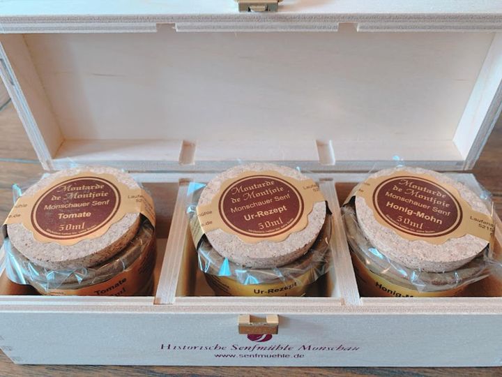 モンシャウで絶対に行くべき場所と言われるのが、「Senfmühle Monschau」。こちらは1882年創業の歴史あるマスタード工房で、昔ながらの製法が現在でも引き継がれています。