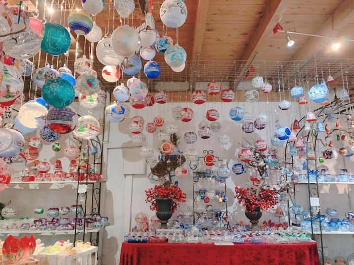 ガラス工房で、工芸品ショッピング