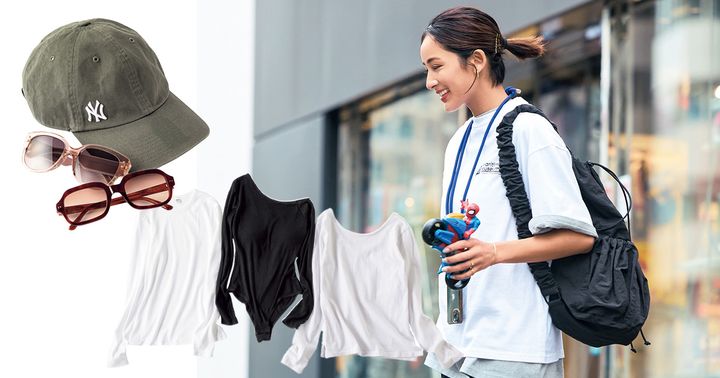 抱っこ紐の日は、おしゃれ心を託せるサングラスとキャップが定番。サングラスは顔周りが洒落て見えるカラーフレーム&カラーレンズがブームで、DIORとLexxolaがお気に入り。ニューエラのキャップは息子と夫、3人でリンクできて嬉しい!