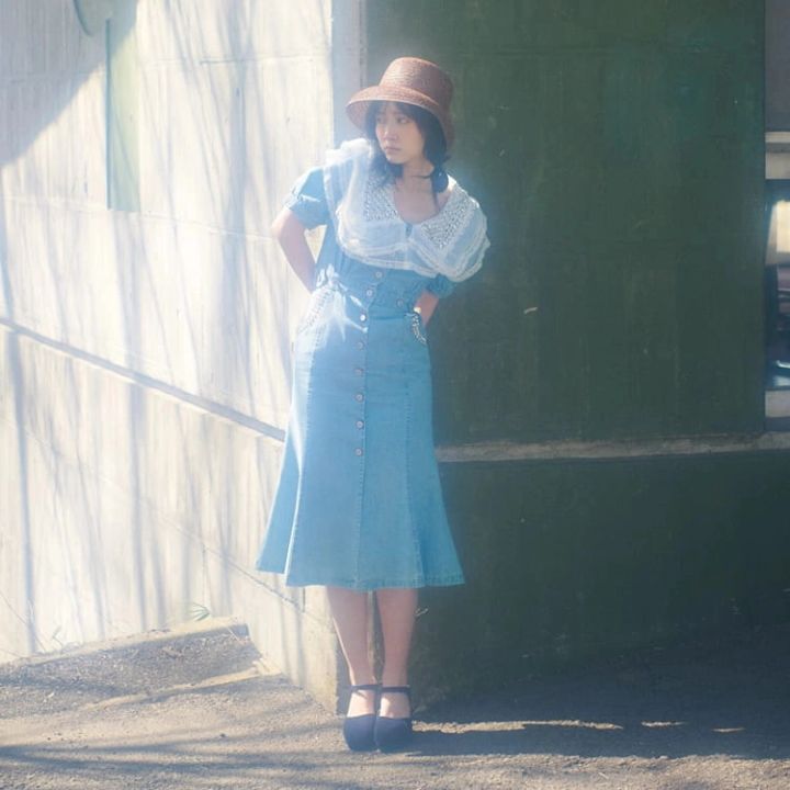 麦わら帽子と相性抜群♡デニムワンピコーデ
