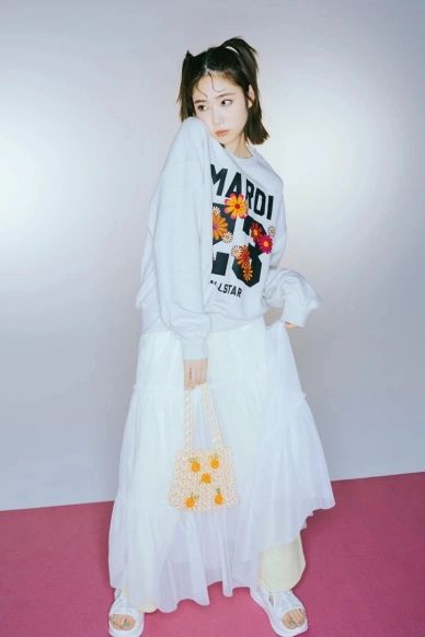 ラフなスエット(スウェット)とチュールスカートでガーリーに