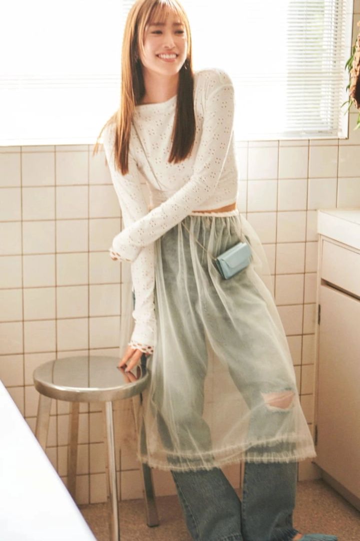 透け感トップスで肌見せ!春にぴったりなコーデ