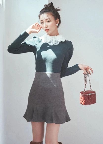 ニットをハイウエストのミニスカにインすれば、すっきりとしたシルエットを演出できますよ。