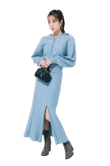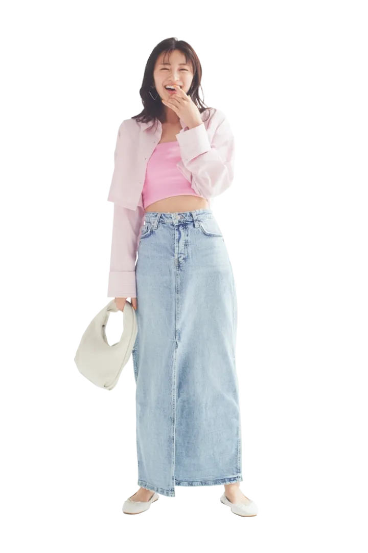 ミニ丈とあわせればガーリーに仕上がるのも◎。足長効果も狙えますよ!
