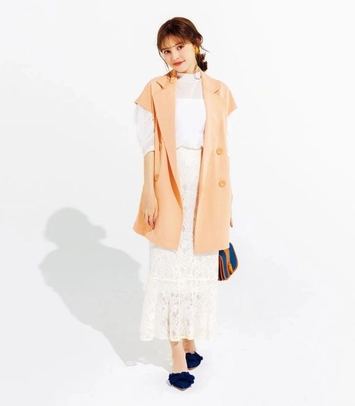 ジレを取り入れれば、清楚な印象に仕上がるオールホワイトコーデにメリハリが出ますよ!