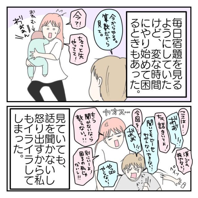 3. [69]お互いイライラでカオス・・。宿題で癇癪を起こす長男のサポートがしんどい・・。学校に行きたくない理由|ねこじまいもみの楽しくワンオペライフ