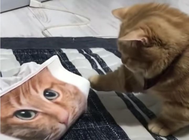 3. 「え? これ僕じゃん?」 自分とそっくりな商品を見た猫さんがいい反応を見せてくれた。