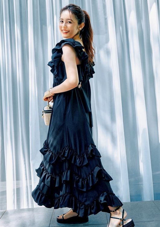 ラフになりがちな夏だから、絵になる1枚を指名買いしたい。甘い装飾がきわだつ盛甘な黒ワンピは、装飾をクールダウンした、媚びない甘さがアラサー的な最適解。可愛らしさと強さが共存する、存在感のあるスタイルに。