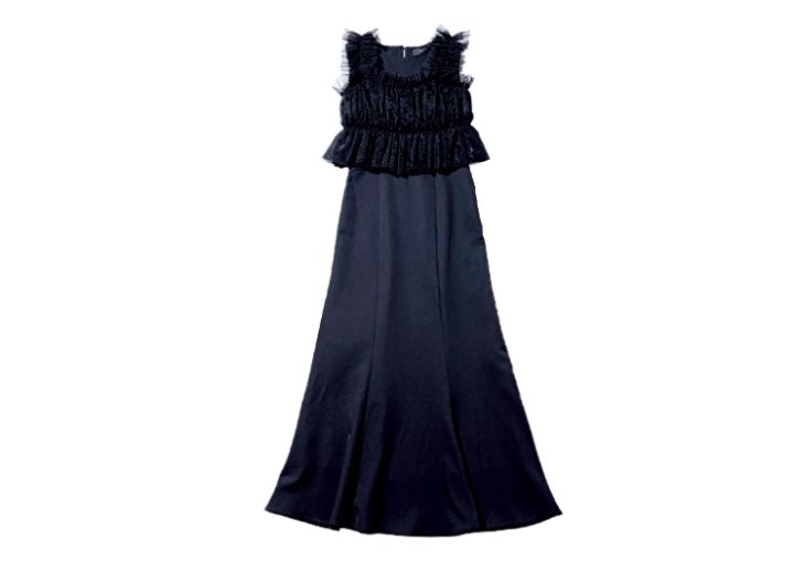 たっぷりあしらったフリルはもちろん、バックスタイルのリボンディテールもインパクトたっぷり。全方位、どこから見ても着映えする1着は、黒だからこそ甘くなりすぎず、モードな空気感をまとえます。