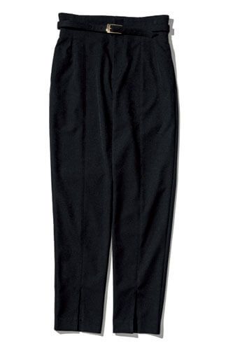 センタープレス+スリットですらっと縦のラインを強調。フロントのスリットが脚長効果期待大。ベルト付きデザインだからINスタイルもすっきり。