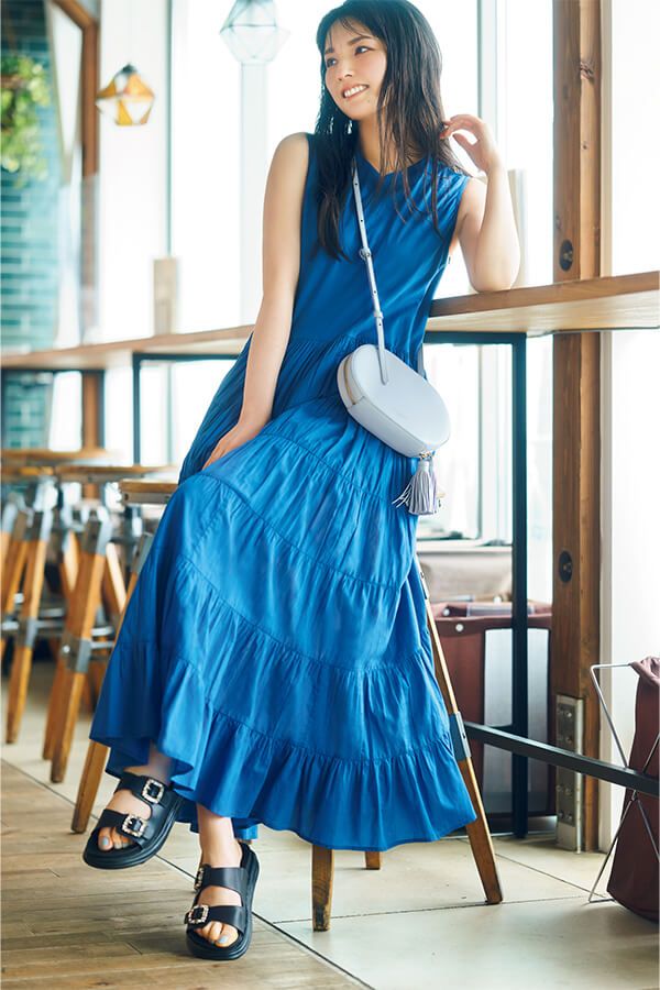 靴¥3,190/神戸レタス ワンピース¥11,000/31 Sons de mode(ヒロタ) バッグ¥121,000/J&M デヴィッドソン(J&M デヴィッドソンカスタマーサービス)