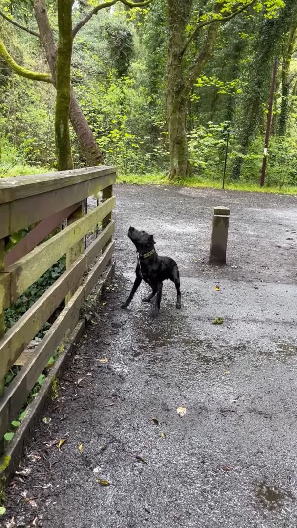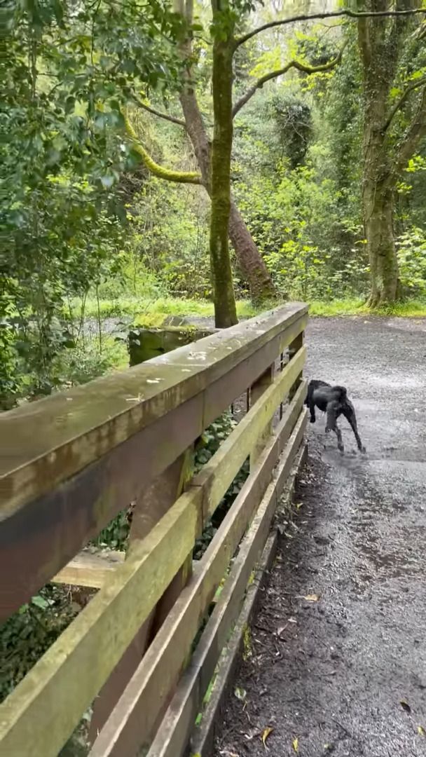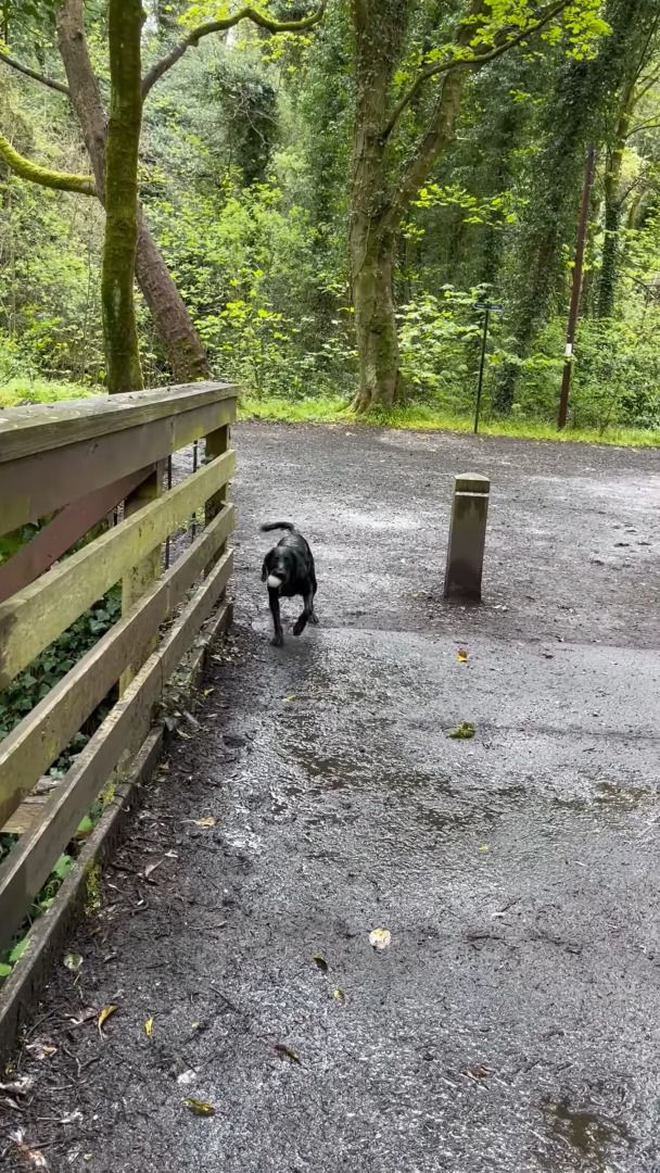 ボールを口にくわえたマイロが、撮影している飼い主さんのいる橋のたもとまで駆けてきました。 この後は、飼い主さんに「投げて!」とおねだりするのかとてっきり思いきや・・・