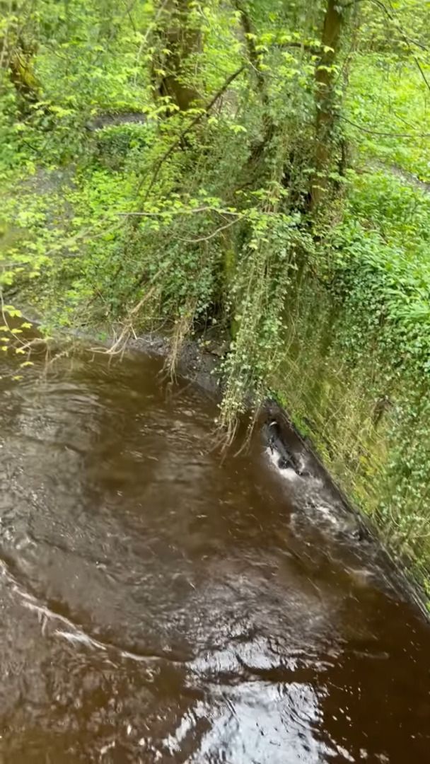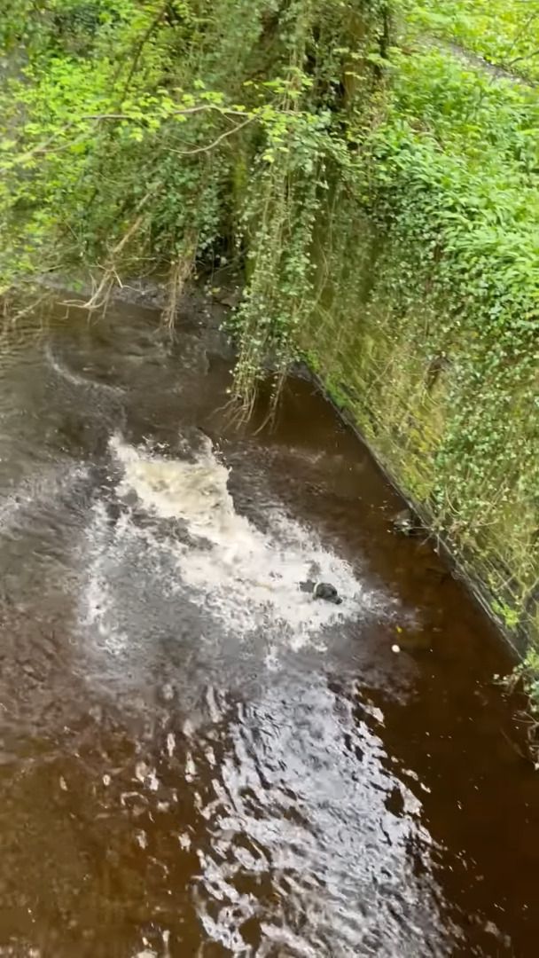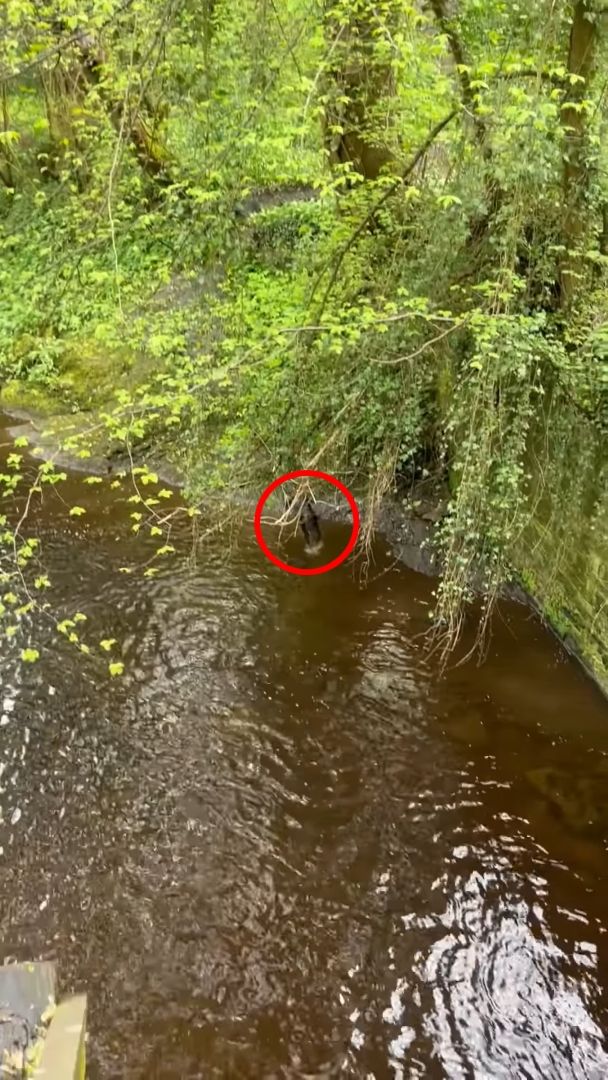 細い道を下り、先ほどボールを落とした川へと辿り着きました!