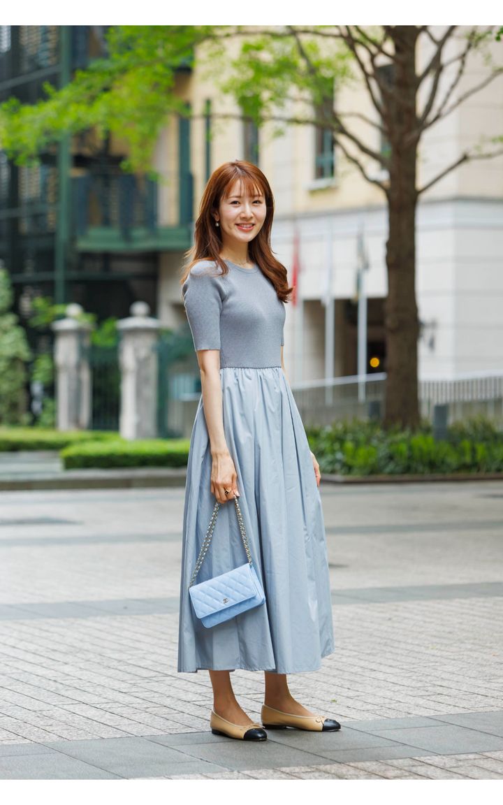 「出産してベビーカーを使うようになってから、バッグ選びにも変化が出るようになりました。荷物がたくさん入るママバッグがメインになったものの、どうしてもそれだけだと気分が上がらず…。ミニショルダーはオシャレしている!という高揚感をくれるんです」西原真希さん・163cm(36歳/8カ月の女の子ママ)