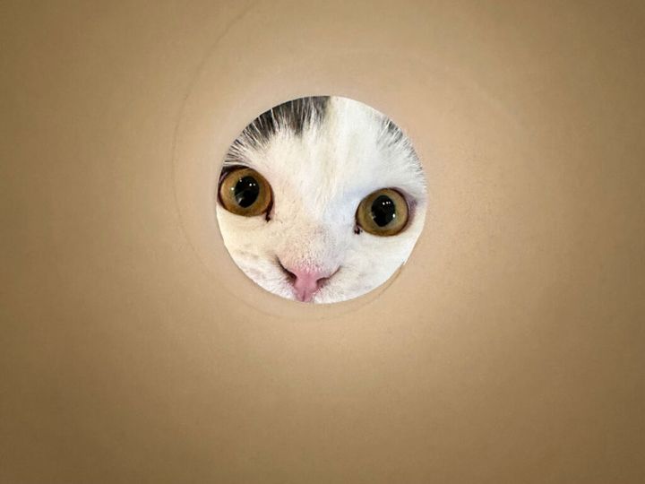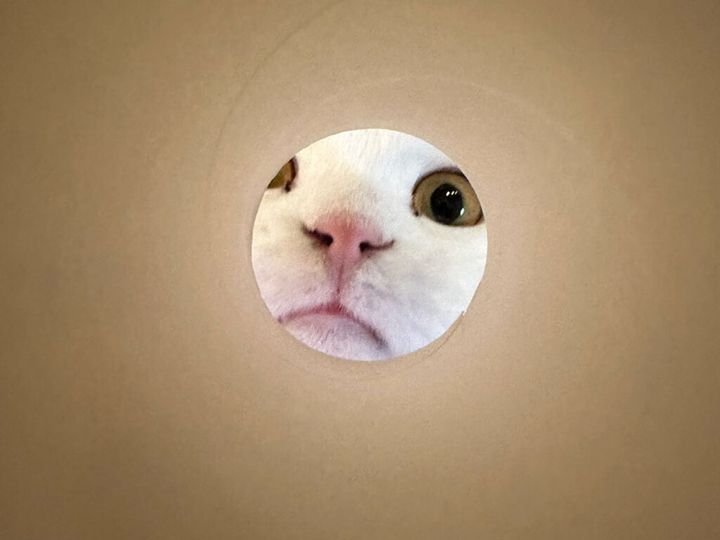 この前、急におかあちゃんがトイレットペーパーの芯でボクを見てきたんだよ。何してるんだろう? 時々、変なことしてくるんだよね。仕方ないから、のぞいてあげたら、すっごく喜んでいた。ボクも嬉しくなっちゃった。