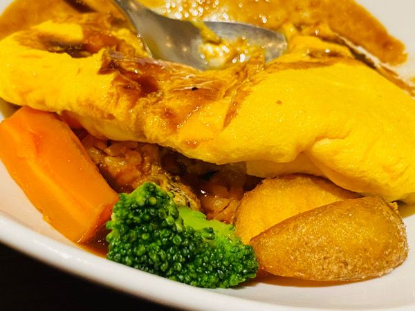 野菜の旨味たっぷりのベーグドライスに濃厚なハヤシソースがマッチ。本当に美味しい! 卵と溶け合ってお口の中が幸せでいっぱい。どんどん食べ進めてあっという間に完食でした。 これはMサイズでもよかったな、と後悔(笑) 万人を笑顔にするオムレツライス、最高です。