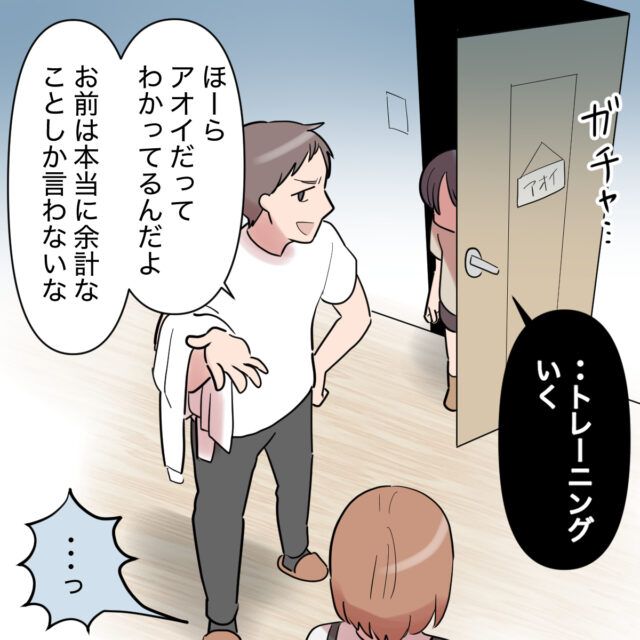 夫に言われるがまま暗い顔でトレーニングに向かうアオイを見て、このままではいけないと強く感じました。