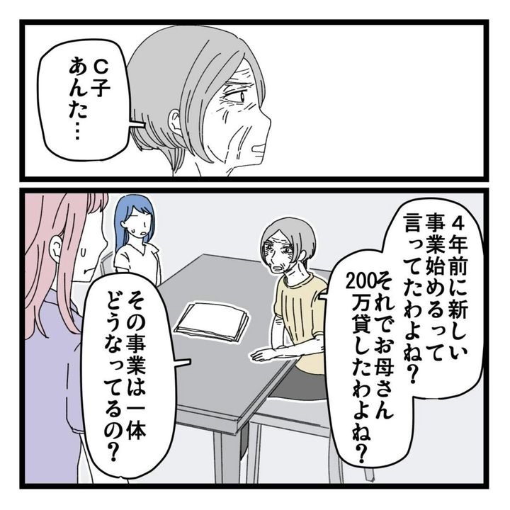 預金の使い込みが始まった4年前、すでに義母から200万円借りていた義姉。事業を始めるという名目で借りたようでしたが、結局事業は始まらなかったようです。