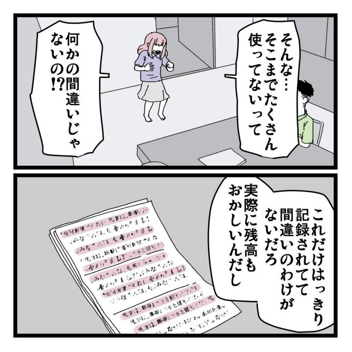 ある日、義母が預金残高が不自然に減っていることに気づきます。どうやら4年間で1000万円近くのお金が引き出されていたようです。預金カードからお金をおろせる人物は限られていて、家族はすぐにお金を下ろした人物を特定することに…。身内とはいえ、勝手に引き出してはいけません。まして、老後のために貯蓄していたお金がなくなり、義母は悲しい思いをしたことでしょう。
