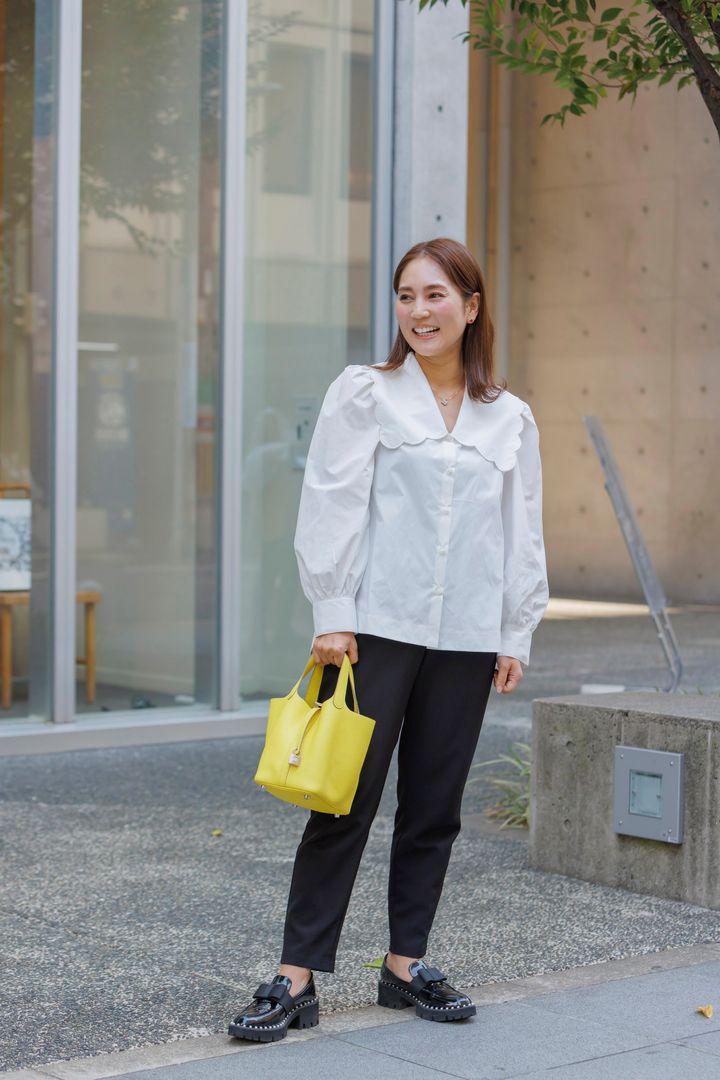 loafers/HERMÈS tops , pants/yori bag/CHANEL