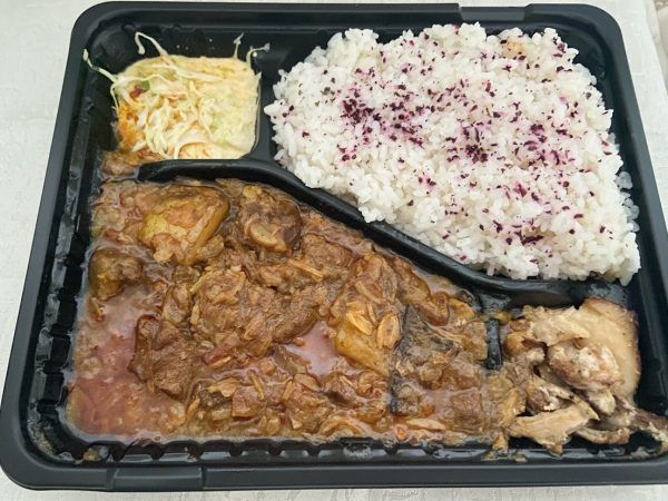 ビフカレーは、具材がたっぷり入っていて、様々な種類のスパイスが効いたカレーでした。ごはんは、容器たっぷり入っていて、ゆかりのふりかけがかかっていました。ゆかりとビフカレーの組み合わせ気になっていましたが。ゆかりの酸っぱさとビフカレーの相性はとても良く美味しくいただくことができました。