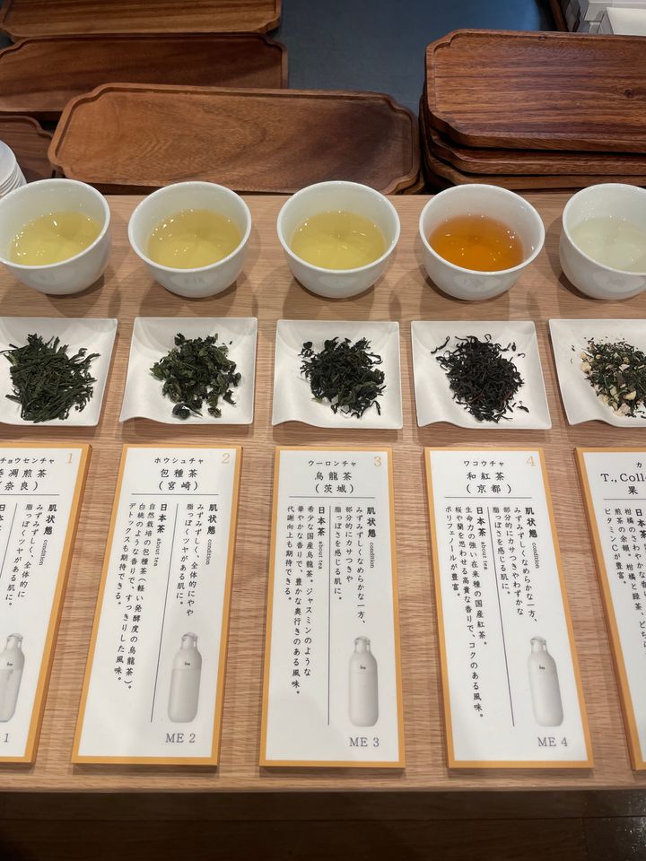 16種の化粧液MEと日本茶専門店SABOE監修の16種のお茶があり、肌測定で自分の肌に合わせたものを1種類ずつ提案していただきます!
