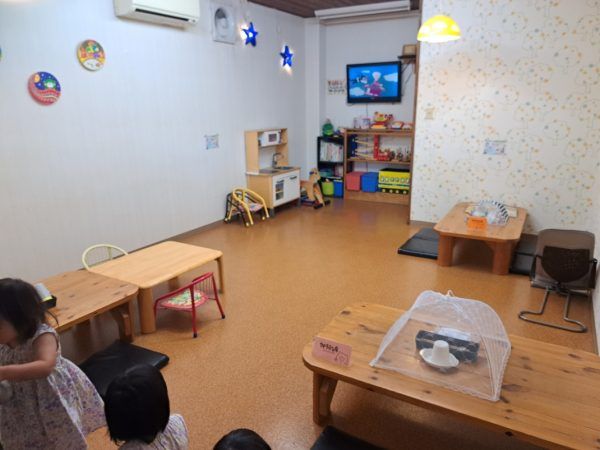 おもちゃがたくさん、子供用の椅子もたくさん用意されているキッズルームでした。おもちゃのキッチンや、乗り物。キャラクターのテレビもついていて、子供たちは大喜びでした。 90分の時間制限はありますが、楽しく過ごせるカフェでした。