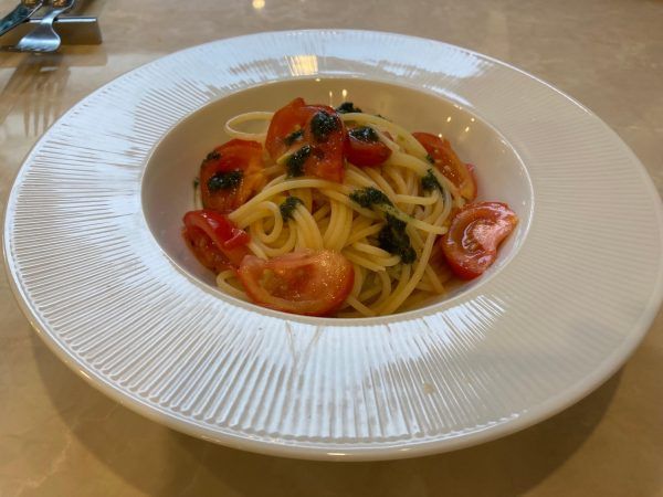 王道のトマトソースパスタを想像したものの、まるで別物!フレッシュトマトならではの、甘みとうま味、そしてほんの少しの酸味を味わうオイルベースパスタです。