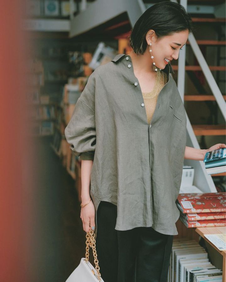 5月29日(水)、シャツといえばかしこまった着こなしになりがちですが、新入社員との差をつけるならリネン素材で軽やかさを演出。カジュアルな表情で襟元や袖口の着崩しテクニックとも好相性です。インナーにはラメタンクをチラッと覗かせて女性らしさを引き立てつつ、レイヤード術で奥行きと感度を加えて。仕上げにゴールドの小物で全体を引き締めてレディライクにまとめるとうまくいきます。