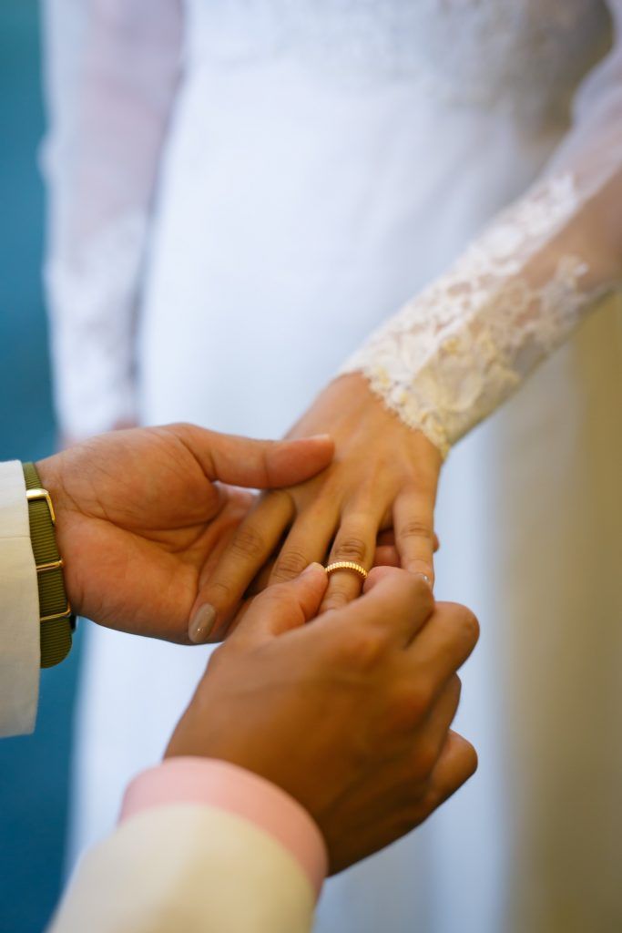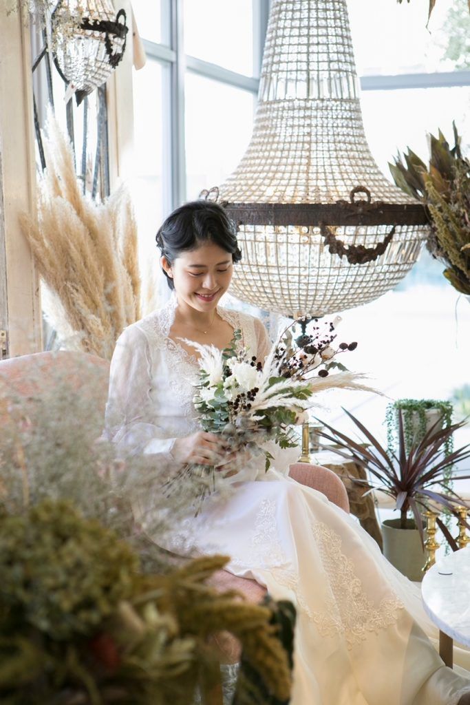 「デザインの仕事をしている夫のこだわりもあり、デザイン性が高くて歴史のあるブシュロンを選びました。実際につけてみて、色味やデザインが一番気に入ってエンゲージはキャトルラディアント、マリッジリングにはグログランを選びました。」