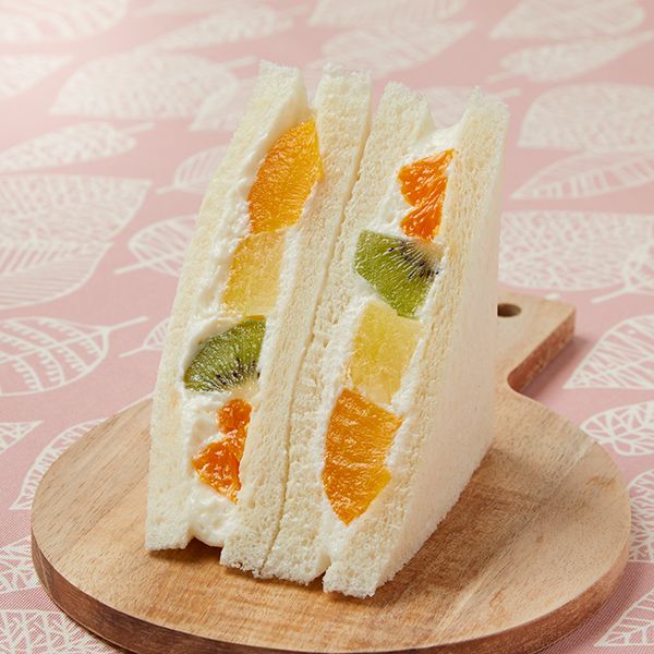 キウイ、黄桃、みかん、パインの4種類の具材を使用したフルーツサンドです。おやつにも。