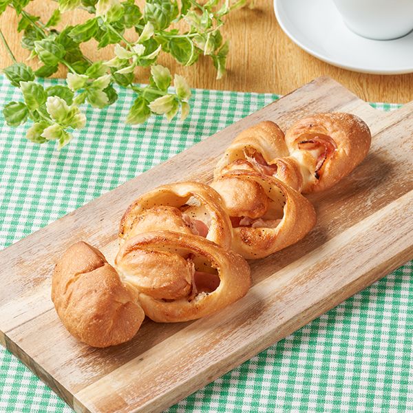 ハムを包んだパンにマヨネーズとチーズを乗せて焼き上げた、ジューシーなパンです。安心のおいしさ!