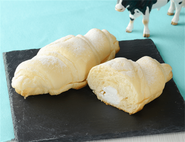 冷やしてもおいしいパンです。やわらかな白いパン生地でレアチーズクリームを包み焼き上げ、レアチーズホイップクリームを加えました。