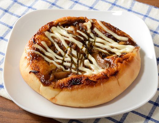 ふんわりしたパン生地の上にたまねぎを混ぜた、たまごサラダと照り焼きチキンを全体に乗せ焼き上げた惣菜パンです。