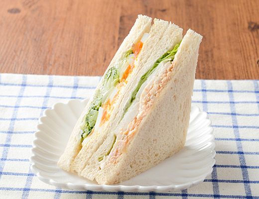 サラダチキンと茹で卵、ブロッコリーサラダを組みあわせた食べ応えのあるサンドイッチです。