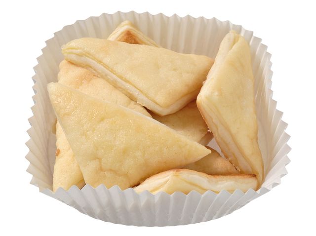 バター風味のクリームを折り込んだ生地に、メロンパンのビスケットのような生地をあわせ、グラニュー糖をかけたひとくちサイズで食べやすいさんかくパン。8個も入ってます!